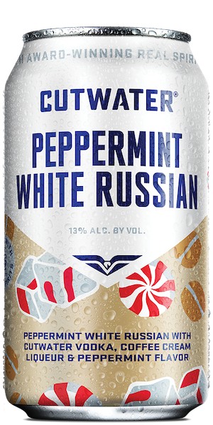 Cutwater Peppermint White Russian is a ready-to-drink (RTD) cocktail combining vodka, coffee cream liqueur, and peppermint flavor. Carry ABV 13%