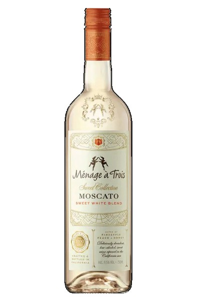 Ménage à Trois Moscato Sweet White Blend wraps you up in sweet splendor. A fragrance of orange zest and honeysuckle lead to decadent flavors of ripe summer peaches and bright pineapple drenched in honey and orange blossoms. On the palate, the richness is lifted with delicate carbonation and a lively finish. A life of luxury is just a sip away.